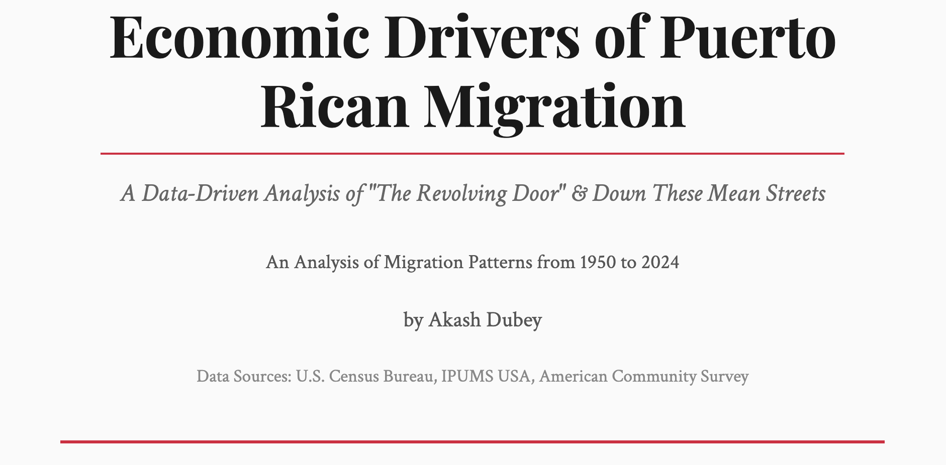 Most historical analyses rely purely on text, but numbers often tell the most compelling stories of demographic shifts. This project is a comprehensive, interactive data visualization website that tracks and analyzes the profound economic drivers behind Puerto Rican migration to the mainland United States from 1950 to 2024.